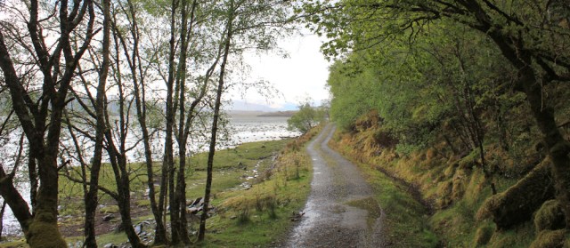 Onwards goes the track. It stops raining, temporarily, and I can see Arivegaig across the bay. Nearly there.