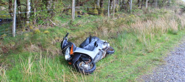 A metal object on the verge catches my attention. What is it? As I get nearer, I realise it’s a motor scooter. Wonder why it’s been abandoned here?