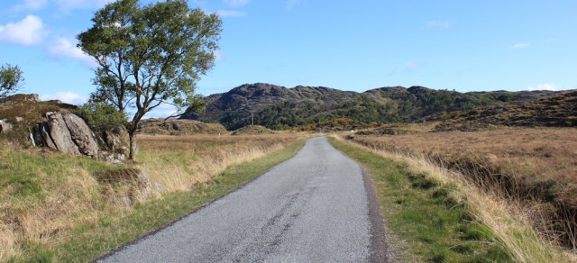 The B8044 road, I have to confess, doesn’t look very inviting. It runs in a lazy curve across the edge of Kentra Moss, single track, and with enough traffic to be irritating.