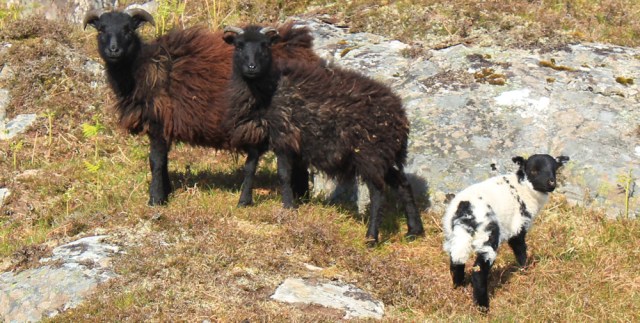 I climb down off the raised knoll, and say hello to a couple of black sheep. Yes, you definitely look like Hebridean sheep. But what happened to your lamb?
