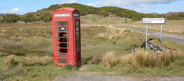 I reach a junction where a minor road turns off to somewhere called Newton, and there, in the middle of nowhere, is a red telephone box.