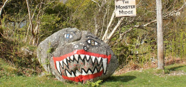A little further, I come across a large painted stone beside the road. AH! There really is a Monster Midge, after all!