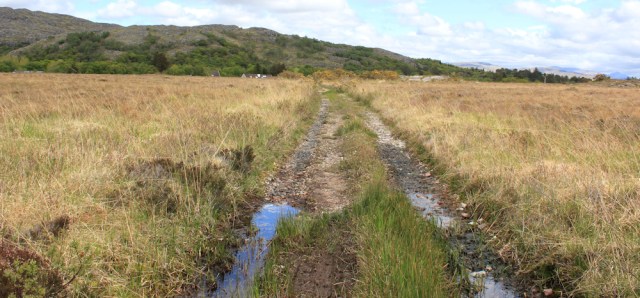 Further along the road, and I’m back on the flatness of Kentra Moss. I come to a track that leads in a northeast direction. This takes me across the Moss and up to the River Shiel. After a day of dry weather, the surface underfoot is reasonably firm, but it’s still very muddy in places.