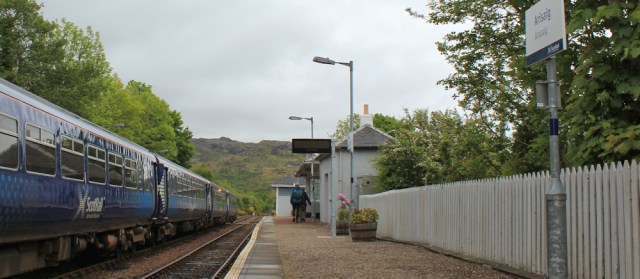 There’s only one other person waiting to board the train at Morar station. It’s a very short ride to Arisaig, and I never get a chance to buy a ticket. (I’m not happy about this, partly because I’m an honest person, but mainly because train companies have a good excuse to close stations if it appears no-one is using them.)