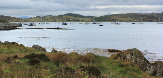 Arisaig station is the “Most Westerly Station in Britain”, according to a ScotRail sign, and it’s some way from the village. I follow the cycle/walking path down to the shore.