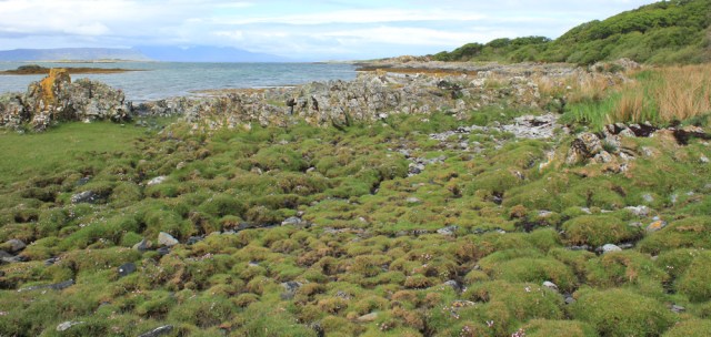 There’s not a soul in sight. Down by the shore, I climb over rocks, walk along grassy slopes, wade across the occasional patch of muddy beach…