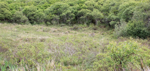 I’m relieved to get out of the trees and into an area of open space. No sign of a path now, so I head through the mass of small bushes and towards the sea.