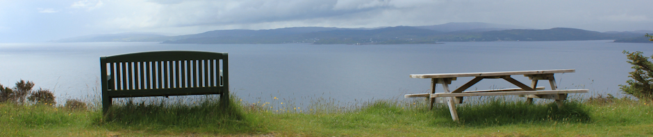 A plaque on the picnic table instructs me to ‘Sit and Enjoy the View Like Chris Griffin Did.’ Yes, I’m happy to obey. Sit down and eat my lunch while staring out across the Sound of Sleat and the mist-covered hills of Skye.