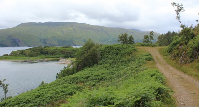 I come to a fork, and walk past the turning, before realising I’ve probably missed the route. There are no footpath signs to show the correct way to Sandaig, so I’m glad I’ve got my Garmin.  I think I need to turn right here, and follow this track over this bridge.