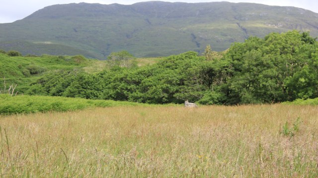 I take one last look across the meadow, towards Maxwell’s memorial stone. The dark slopes of the mountain behind – Beinn a Chapuill – make a fitting backdrop.