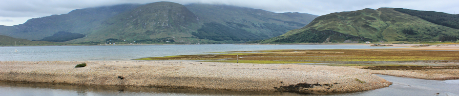I’m coming down towards the sandbank-lined mouth of a river valley – Gleann Beag – where a river with the same name (but different spelling), Abhainn a Ghlinne Bhig, empties into Glenelg Bay.