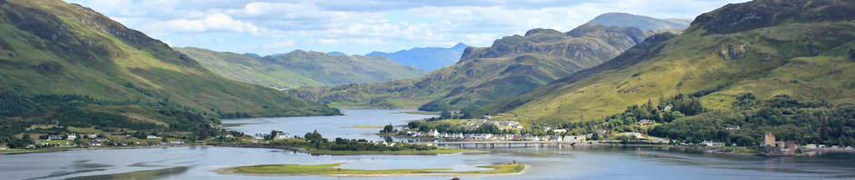 On the way down to Totaig, I keep stopping to take photos of the views. Check my map. That’s the village of Dornie, where the road crosses over the mouth of Loch Long. The mountains in the distance – what a view – are in an area called Wester Ross.