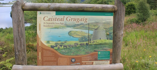 But a nearby sign tells me this is Caisteal Grugaig, an iron age stronghold, otherwise known as a broch. Apparently there are several in the area.