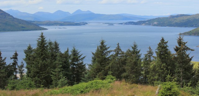 Looking over to the north west, I can see the coast of Skye and spot a bridge in the far distance. That must be the bridge over to Skye! It’s my first sighting of this important landmark, and it lifts my spirits.