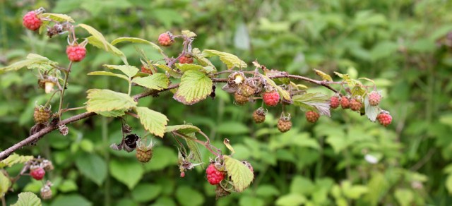As I get to the bottom of the hill, I meet a couple picking berries. At first I think they’re after blackberries, but it’s much too early for blackberries. They’re after raspberries.
