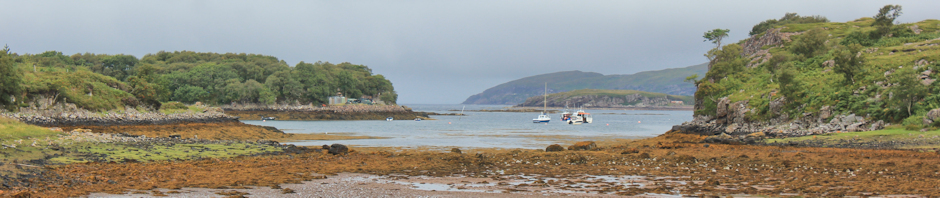 I reach the signpost and the footpath leading to Ardban. From this spot, I have a great view over Poll Domhain. Love the little tidal island sticking up. With the sprig of vegetation on top, it looks like a Christmas pudding.