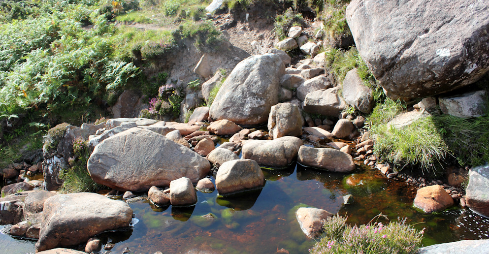 I do agree if walking west from Craig Bothy the path is hard to find. I knew the way because I came that way earlier but I seem to remember you had a good track initially then had to turn left or right climbing over a boulder and that point is not obvious coming the other way (since you don’t get a track forming in a boulder).