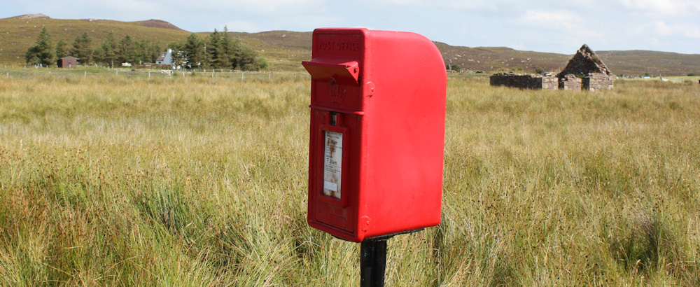 Even in such a wild and empty place, the infrastructure of civilised life remains intact. Dustbin lorries carry away our rubbish. A lonely post box stands ready to collect the mail.
