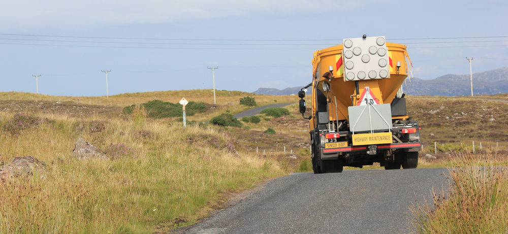 I haven’t got far when there is a rumbling sound behind me. I step off the road, expecting to see a tractor go past, but it’s the roadworks van from earlier in the day. They must have finished repairing the tarmac.