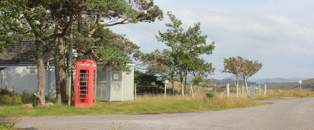 As I’m leaving Port Henderson, I spot a phone booth and a bus shelter. Most public transport in Scotland seems to have stopped due to Covid, so when I see a notice in the window of the shelter, I go to take a look.