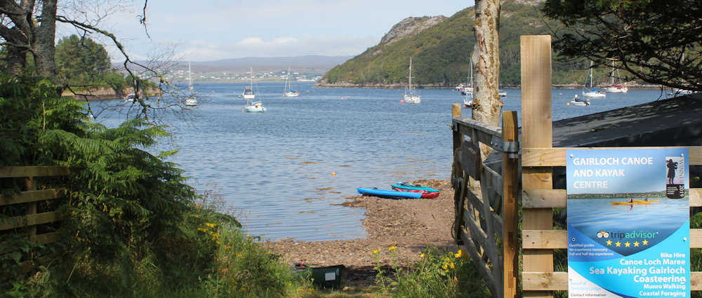 I cycle back to Badachro, and chain up the Monster bike in the parking place by the water’s edge. What a view.