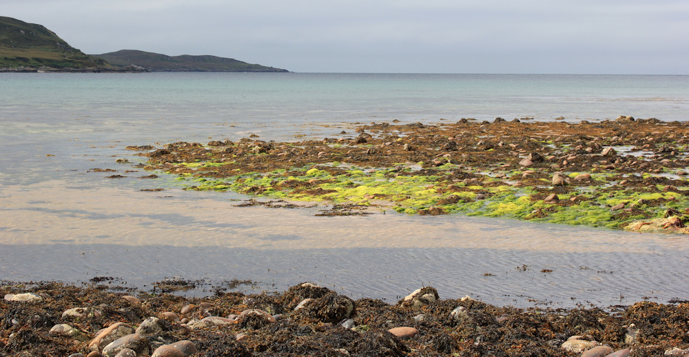 Big Sand lies in a shallow bay, sheltered by a large island just offshore, called Longa Island. The sea is beautifully clear, and I can see the contours of the sand under the rippling water.
