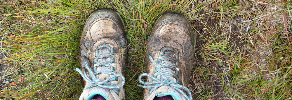 The path soon deteriorates again, into a mess of mushy grass and mud. It’s quite hard to spot the correct route among all the sheep tracks, so I stumble around a bit looking for where it might be.