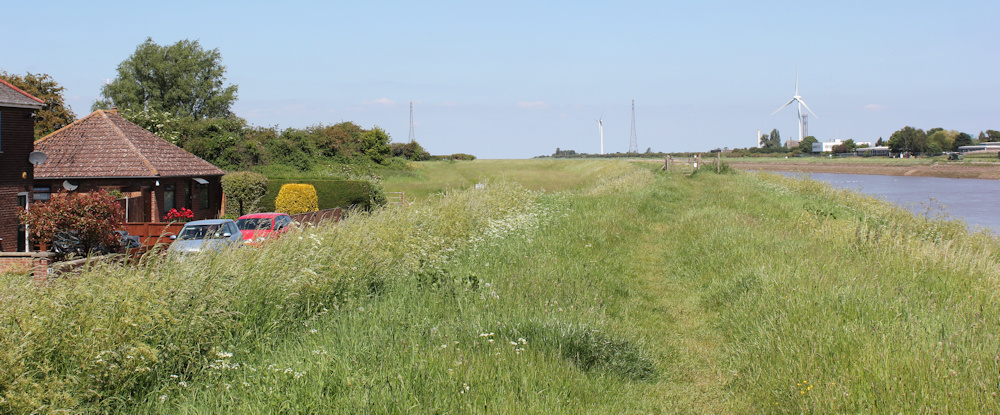 From here, a footpath leads from the sea bank across to the end of the road at Ongar Hill. (Yes, I know, there is no sign of a hill.)