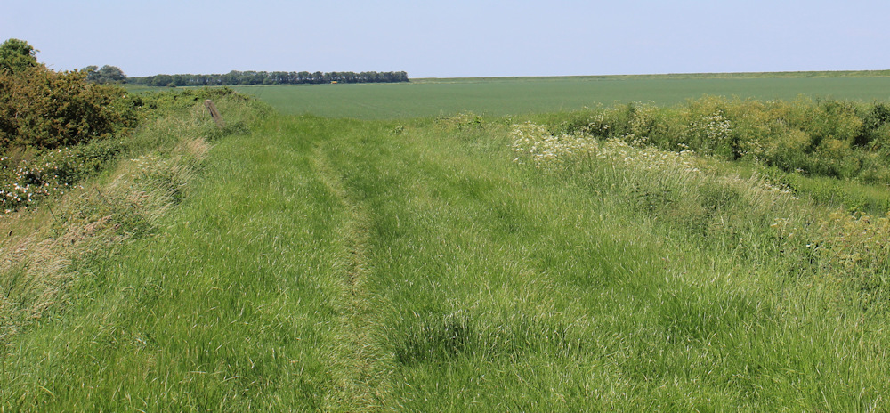 I come to another hedge, but this time I stay on the landward side. I can’t see the water, but at least I can make rapid progress, and there’s a nice breeze blowing from the west.