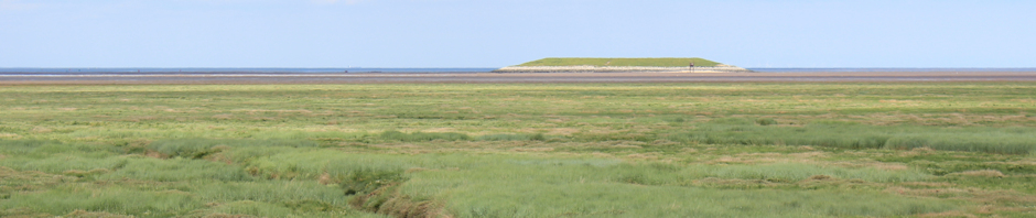 Check my map, which shows a strange oval structure on the edge of the high tide mark. Maybe it’s a military installation of some sort? There is a path leading out towards it, and I’m tempted to take a closer look. But, I’m not sure how muddy the route will be – or whether I’ll be able to reach this strange hill at all, because it might actually be an island – so I decide to stick to the bank and continue on my way.