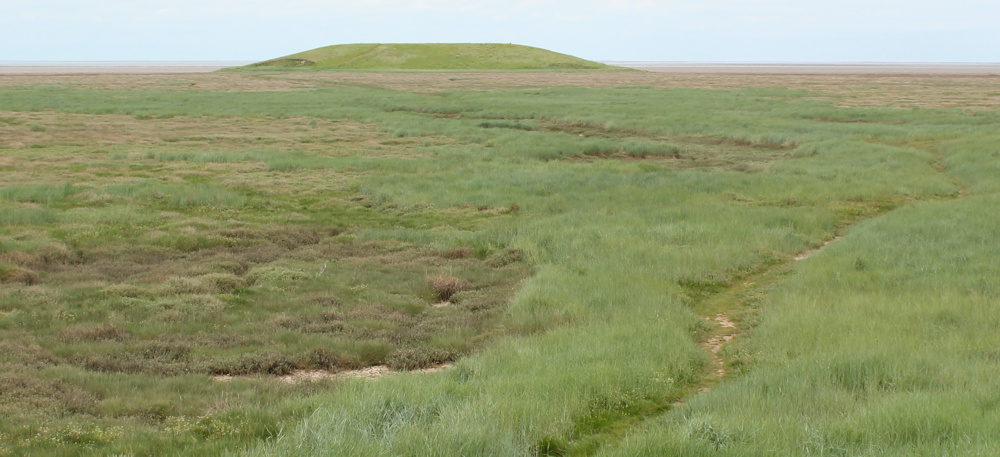 Off to my right, across the marsh, I spot a weird mound. Unlike Ongar Hill, which wasn’t a hill at all, this is definitely a hill. A hill? In the middle of the marsh? It doesn’t look natural.