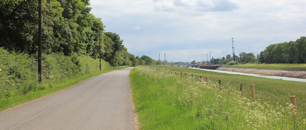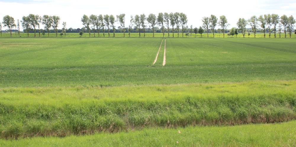 The sea wall has curved inland to become the outer bank of the River Nene. I’m now passing the beginning of the same avenue of trees that I’ve been admiring from a distance.