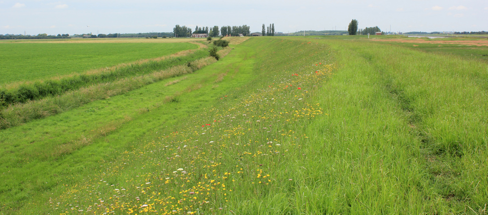 I keep checking my map now. Frampton Marsh is behind me, and this is Wyberton Marsh. The bank carries a not-so-well used path, and has the advantage of being covered in a beautiful mass of wild flowers.