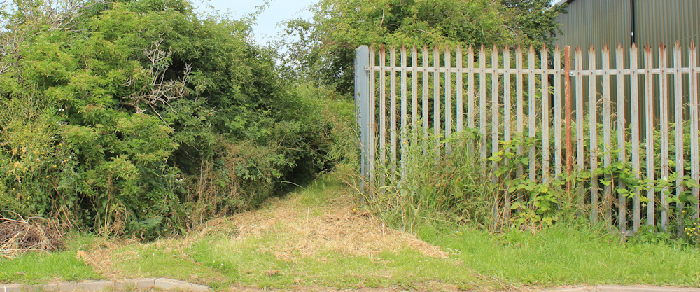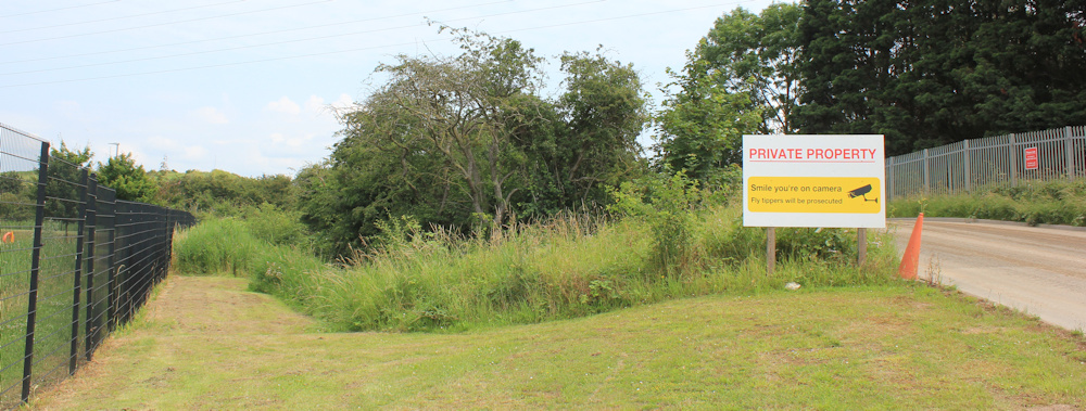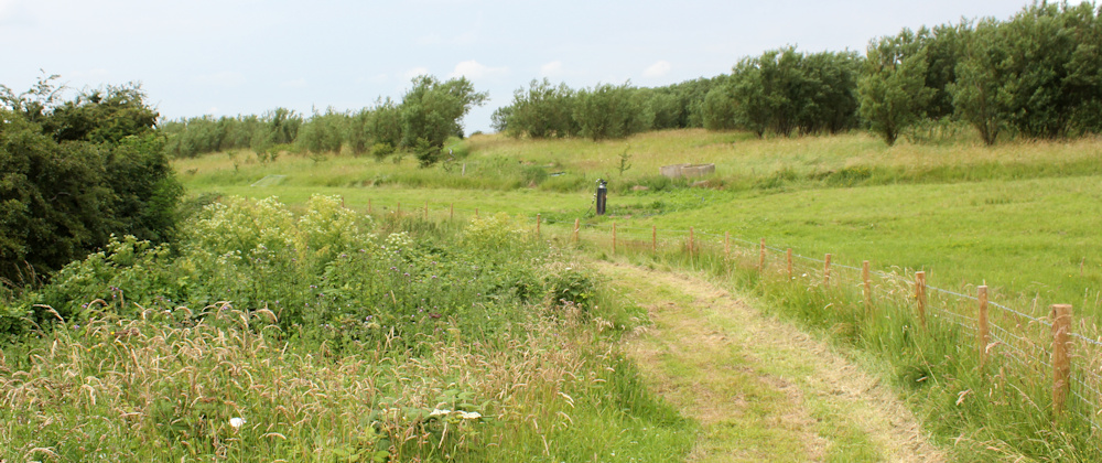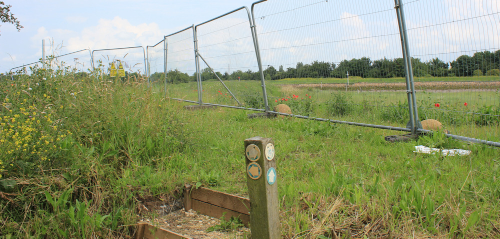 The first part of the diversion looks quite appealing – a well-mown path around the edge of an old waste tip. There are gas-releasing tubes and cannisters poking up through the top soil