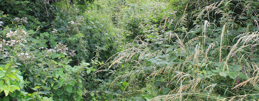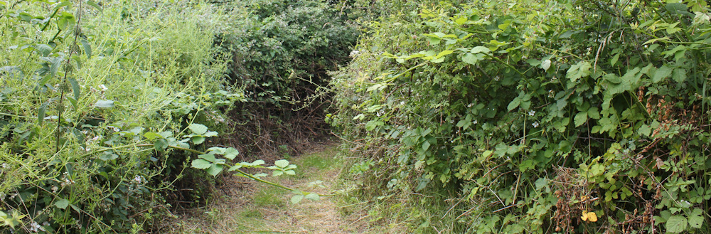 Onwards. I’m walking through a tunnel of vegetation. It’s hot and stuffy – no breeze – and I’m hungry but can’t see anywhere nice to sit and have my lunch.