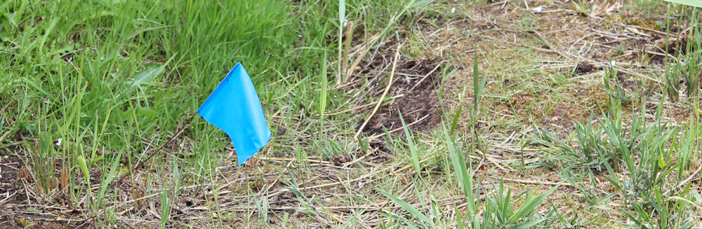 Beside the path is an odd little blue flag. Very small. I wonder what it means and why it’s there?