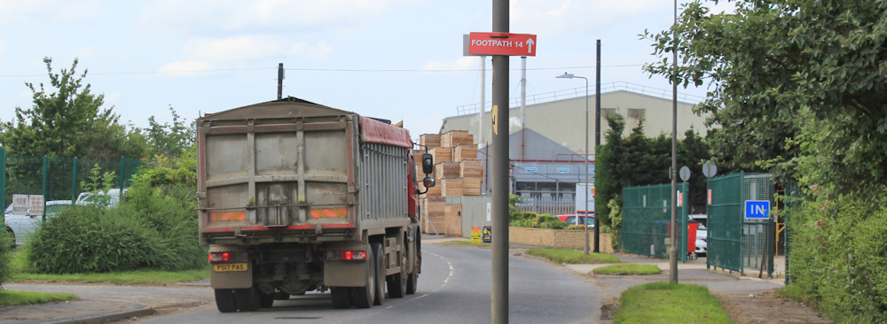 I have no idea whether footpath 14 is the path I want, but I dutifully follow the signs. Check my Garmin from time to time. Yes, I’m heading through the industrial estate and into Boston.