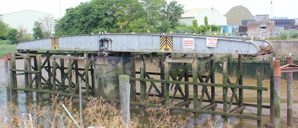 I spot a swing bridge – but this one looks like it hasn’t swung for some time. Once it carried railway freight to and from the port.