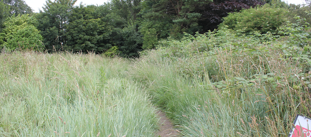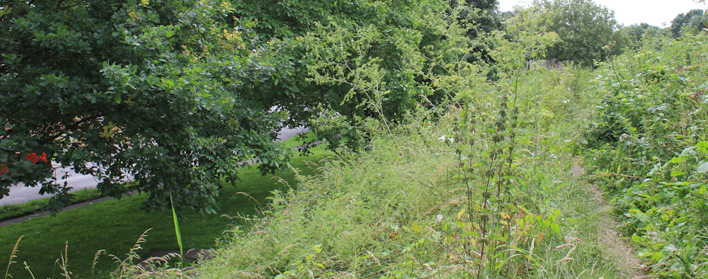 The footpath runs on a bank above an avenue. It’s pretty overgrown in places, and I’m tempted to give up and join the road, but I persevere.