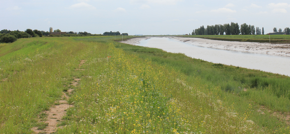On the other side of the wall is The Haven. This channel carries the combined waters of the River Witham, the South Forty Foot Drain, and the West Fen Drain, from Boston down to the sea. Well, down to The Wash, anyway.
