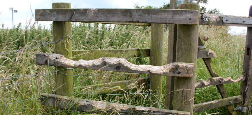 I place my feet on some of the wider supports and pull myself up. But I only get as far as straddling the fence, before I decide I’ve had enough. No path, unusable stiles, and the threat of cows ahead… I turn back and return to the start of the track. From now on, I’m going to choose the easy way!