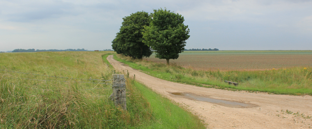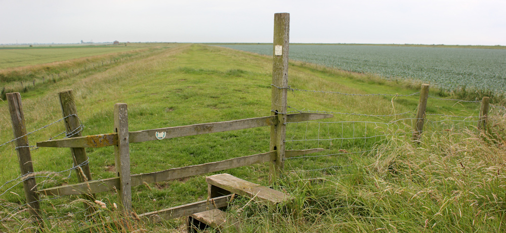 I’m nowhere near the sea, of course. From the bank I look out over a large expanse of grass and marshland. At least the path on the top of the bank is nice and clear.