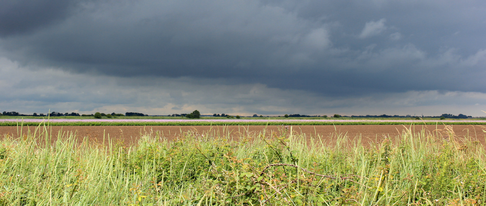 Cycling back down the road, I am more concerned about the weather. In the flatness of the fens, you can see rain clouds rolling in from miles away, and those ones look ominous.
