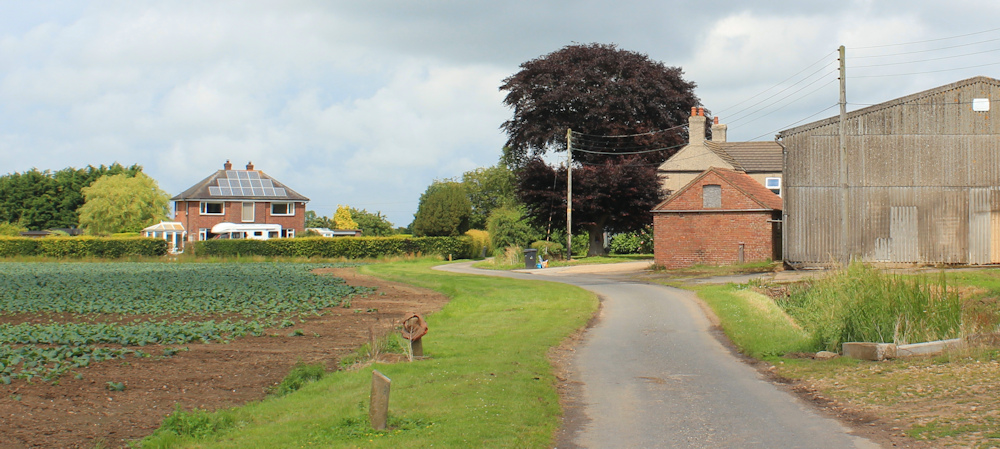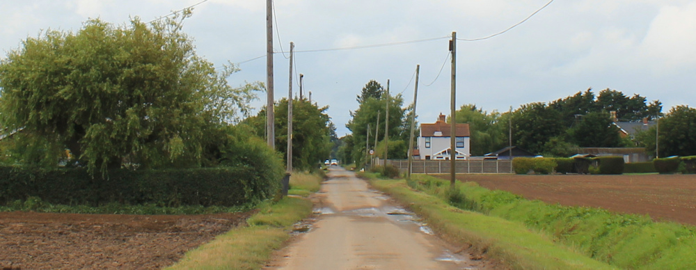 So I cross straight over the A52 and continue down the lane (which now becomes Eau Dike Road). At the first opportunity I will turn right – here, at Sickling Lane – and now I can walk the back roads into Wainfleet.