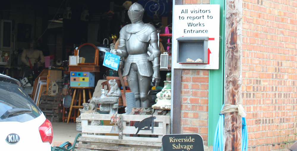 This turns out to be the Riverside Salvage and Reclamation depot. A fascinating looking place. I resist the urge to go in and poke around, and carry on down the road, which I think must swing round and follow the river back to the bridge. Yes, it does