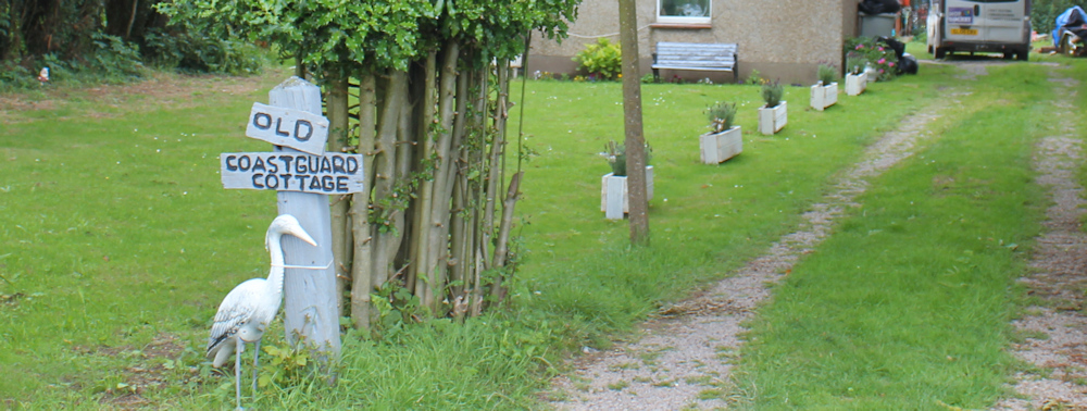 I head down Sea Lane. Past a pair of semi-detached houses on my left, with the name “Coastguard Cottage” on the wall. Past an older house on my right with the name “Coastguard Cottage” on a post, above which someone has added another sign that hangs at a jaunty angle. “Old”.