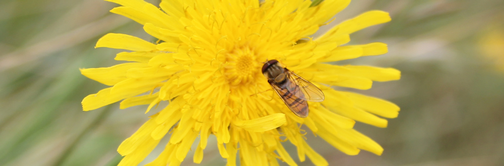 And I spot a busy fly, feasting on this bright yellow flower. Fly? Or is it a wasp? Or a type of bee?