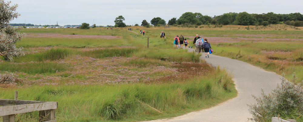 But, now, the water is some way away… across a hundred yards or so of waving grasses, where I can see a family crossing the last ridge of dunes and heading towards the beach.