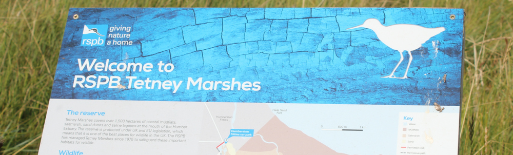 A sign on the other side says “Welcome to Tetney Marshes.” And there’s a bench nearby.