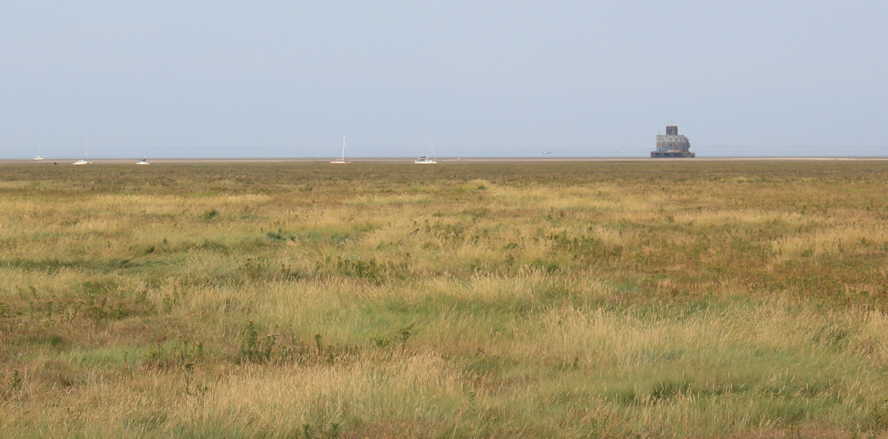There’s something else out to sea. Firstly, I can see few pleasure yachts, which seem to be moored in the grass, but must be floating on an invisible waterway in the marsh. Beyond those little boats is that same hulking ship I saw earlier. Definitely moored. Looks a little odd – strange shape.